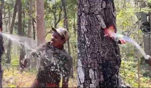 భారీగా ఉన్న చెట్ల చిటారు కొమ్మల వరకు ఎలా నీరు అందుతుందని ఆశ్చర్యంగా ఉంటుంది కదా.... అయితే ఒక చెట్టును కత్తితో నరికితే ఒక్కసారిగా జలధార బయటకు వస్తుంది. ఇది అల్లూరి జిల్లా దేవిపట్నం మండలం పాపికొండల నేషనల్ అటవీ ప్రాంతంలో నల్ల మద్ది చెట్టు నుంచి సుమారు 10 నుంచి 15 లీటర్ల వరకు నీరు రావడం గమనించామని అటవీ అధికారులు తెలిపారు.